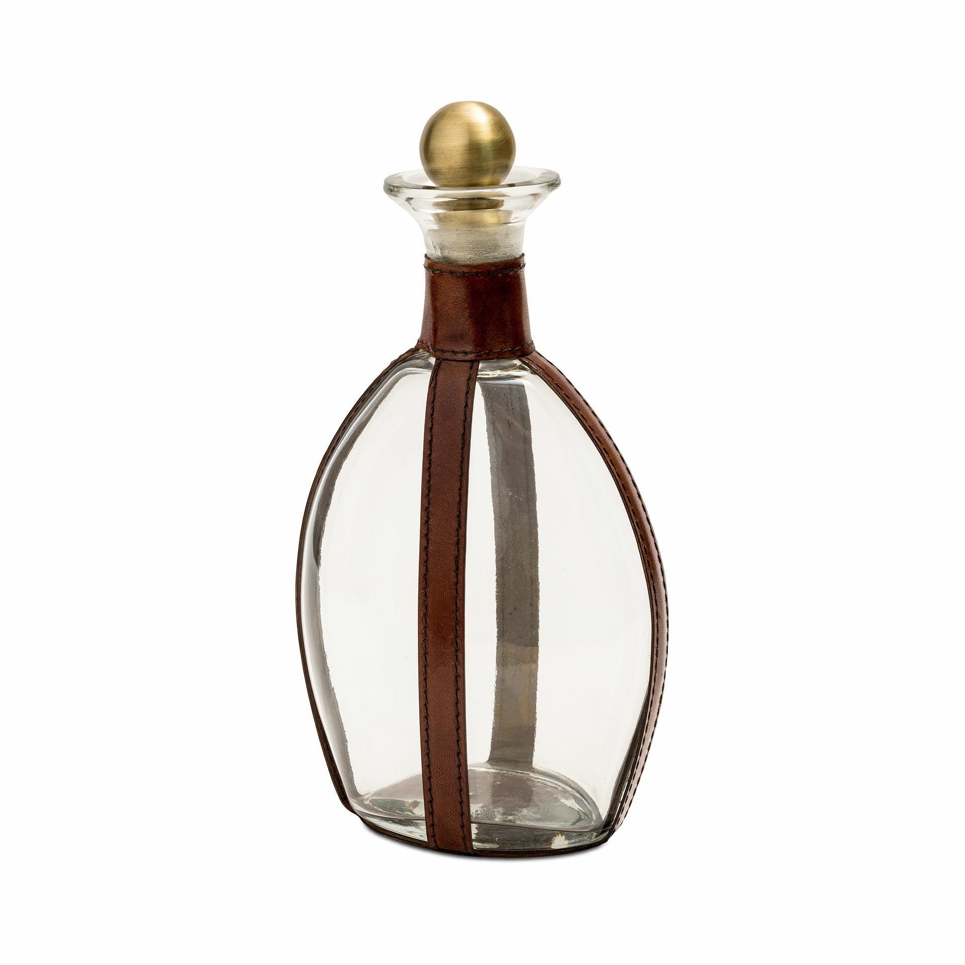 Deri Aksesuarlı Kristal Likör - Viski Şişesi - Karaf